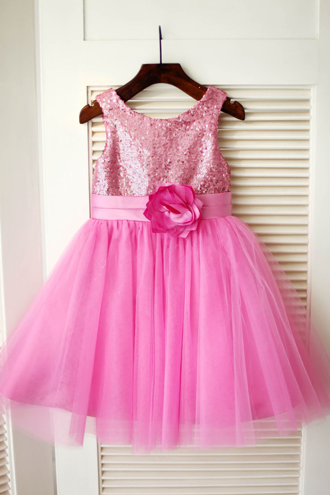 Hot Pink Sequin Tulle Wedding Flower Girl Dress