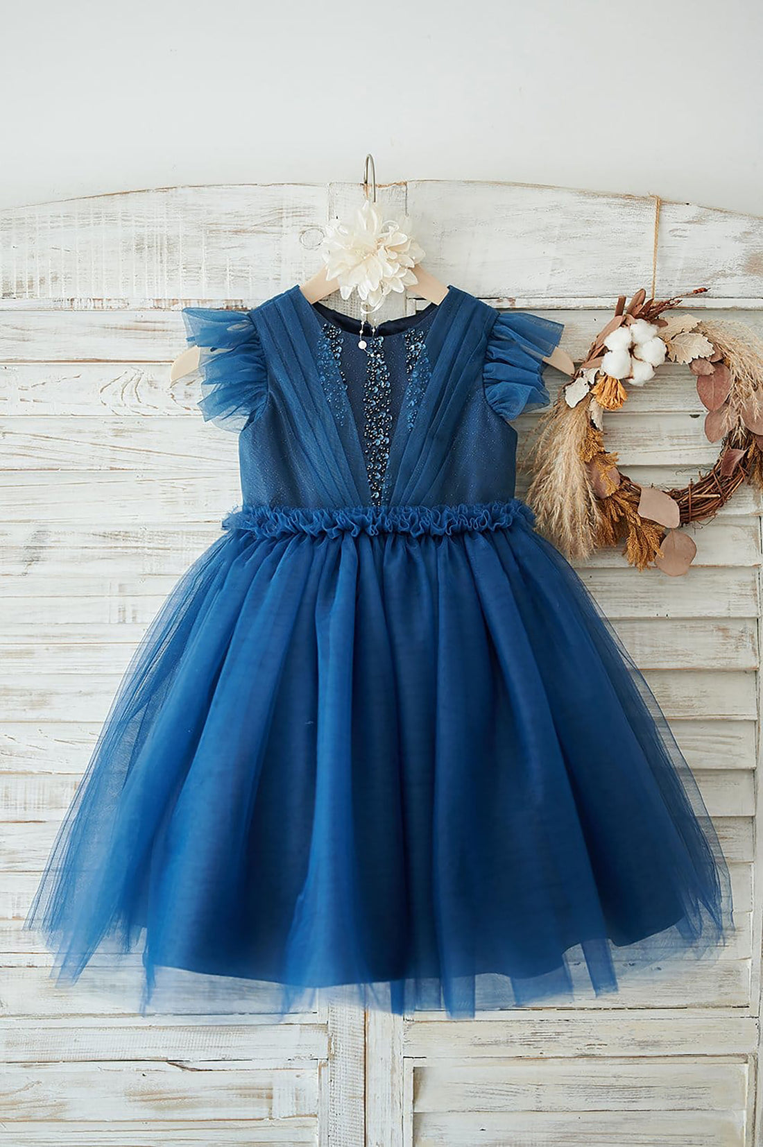 Navy Blue Sequin Tulle Wedding Flower Girl Dress